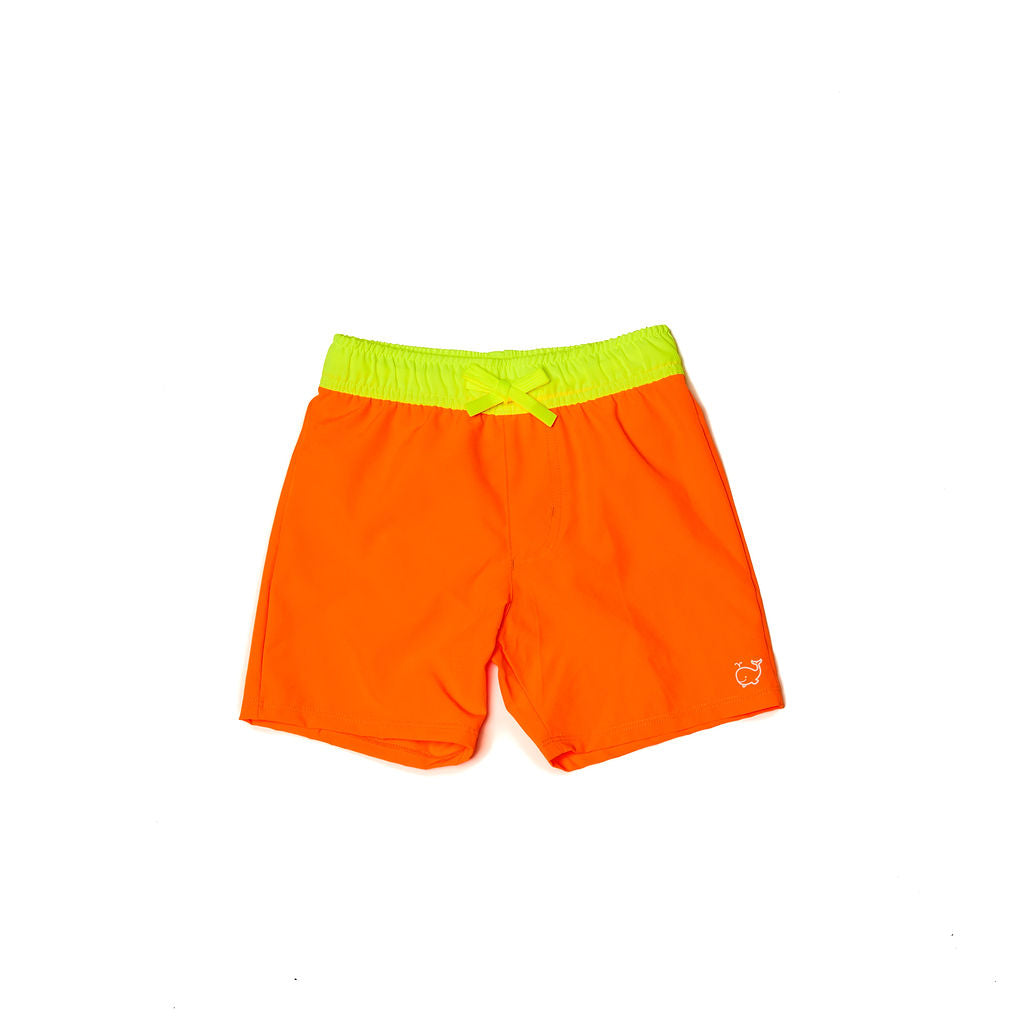Shine bright like the sun in our vibrant, neon yellow and orange rash guard and swim trunks set! Designed for high visibility and ultimate safety, this combo ensures your little ones stand out in the water. With UPF50+ sun protection, chlorine-resistant fabric, and convenient features like a zipper for easy changing, a zipper garage to protect the chin from chafing, a tagless neck for anti-itch, and a functional drawstring for the perfect fit, they'll splash with confidence and comfort all day long.